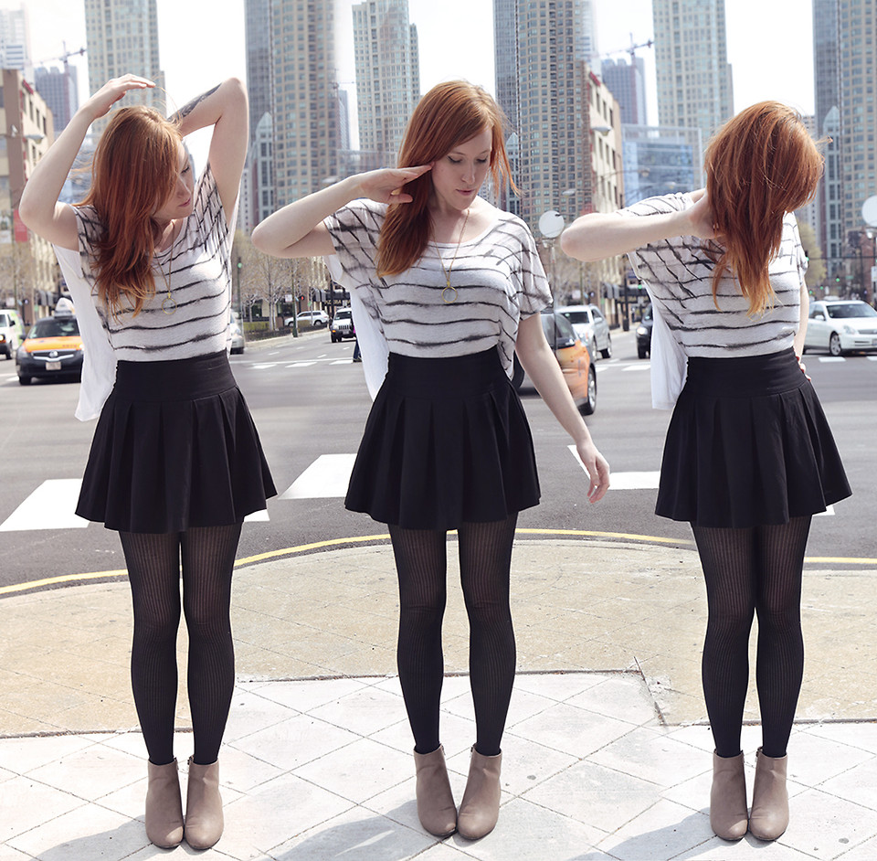 You can pair your high waist skirt with tights teamed up with those favorite boots of yours. This can be a perfect outfit for fall and winter season. You will look extremely astonishing in this and cozy at the same time.